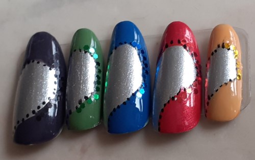 Randiga naglar kan du variera i evighet med olika nyanser på grundfärgen och de tunna strecken. Det är inte svårt men kanske liiiite pilligt. Dock är jobbet är värt alla ”WOW” du kommer få!