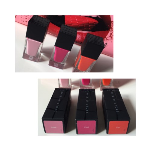 I kitet ingår en återanvändbar påse från Make Up Store samt följande tre nagellack; Sara, Tove och Elif.