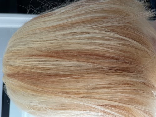 Hej! Jag bifogar en bild på hur mitt hår ser ut nu, och en bild på färgen jag vill ha. Jag ska bara bleka rötterna i money piece fram. Mitt hår är tunt och har varma/rödaktiga undertoner, men jag vill ha en väldigt ljus, kall, nästan isblond front. Hos frisören blir det alltid för gult, och tonern försvinner efter kort tid. Jag gjorde håret själv tidigare och var mycket mer nöjd, så nu vill jag prova igen. Jag har också fått en del vita hår som jag vill blanda in naturligt. Kan ni rekommendera vilken blekning och vilken permanent eller demi-permanent färg jag bör använda för att få en kall, hållbar isblond ton utan att håret tar för mycket skada?587 visningar- Användarens roll: Frisör på Lyko.Kommentaren lades 1 månadHej Michelle! 👋🏼 För att bleka ditt hår kan du använda denna blekning från Manic Panic. Pensla blekningen på din utväxt och kapsla in med folie, kolla håret ungefär var 5e minut för att kontrollera hårets nyans och kvalité, håret får inte kännas gummiaktigt eller ånga/bli för varmt. När slingorna är nästintill vita/ljusgula är det klart och du kan schamponera ur blekningen 🫧 För att få en kall nyans kan du använda denna toning lyko.com/sv/wella-professionals/wella-professionals-color-touch-pure-naturals-icy-ash-blonde-9-16 Fördela toningen jämnt över dina ljusa slingor och låt verka tills du känner dig nöjd med nyansen - tvätta sedan håret som vanligt med schampo & balsam. Tips! Genom att ''skrapa'' bort färgen på en slinga under verkningstiden kan du lättare se hur nyansen ser ut. Om du känner dig osäker är det alltid bäst att låta en frisör göra jobbet. Prova alltid på en liten slinga först för att se hur nyansen blir 🎨 Ha det bäst! 🍁