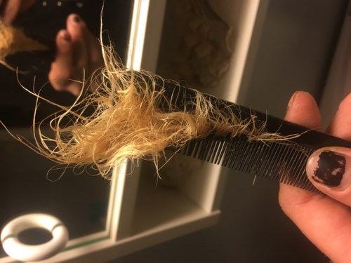- Ditt hår ska vara torrt och rent. Kamma bakåt och ta bort eventuella knutar. Ta ett hår från ytan bakom öronen för testet.