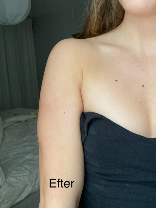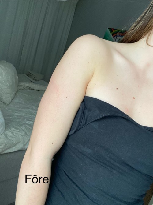 I all ärlighet har jag dragit mig länge för att prova den här moussen sedan jag hämtade ut paketet. Anledningen till det är att jag alltid har varit lite skeptisk till BUS, speciellt till kroppen, för att det verkar så omständigt och kräver så mycket jobb och tid för att det ska bli fint och jämnt. Man ska duscha, skrubba, smörja in sig, inte glömma att smörja extra i knäveck och armbågar, låta den torka, sova i mörka löst sittande kläder och ändå färgar det av sig i sängen, duscha av den och SEN är det klart. Ja ni fattar, jag orkar helt enkelt inte och är hellre blek då. Tänkte att jag måste ju i alla fall testa på smalbenen. Men tji fick jag! När jag väl tog mig för att prova den här moussen så krossades mina fördomar om BUS. Eller ja, i alla fall om vi pratar Marc Inbanes produkter. Jag tog mig i kragen och smörjde in hela kroppen, och det hela var ju klart på mindre än 10 minuter? Jag passade på efter en vanlig dusch där jag använt tvål med peelinghandske på kroppen och smörjt in mig med bodylotion, utan att bry mig om knäveck och sånt där. Med den härliga handsken (lyko.com/sv/marc-inbane/marc-inbane-glove-25d352b7) var det ingen match att få produkten jämn på kroppen och komma åt överallt. Jag tror faktiskt att det blev helt okej på ryggen till och med. Jag jobbade in den med lite tempo för att det inte skulle torka in innan jag var klar, och tog en kroppsdel i taget. Det går också lika bra att använda den i ansiktet, då tillsammans med Kabuki Brush (lyko.com/sv/marc-inbane/marc-inbane-kabuki-brush). Moussen är lätt och luftig samt lätt färgad så att man ser vart man applicerat och vart man behöver gnugga lite extra för att det inte ska bli fläckigt. Efter applicering så torkar den in på typ två minuter och kladdar inte alls. Väntade ändå ett tag med att klä på mig för säkerhets skull, men kände inte att jag behövde duscha efteråt. Jag upplever också att moussen är återfuktande och bidrar till att öka lystern i huden. Doften är absolut överkomlig och den luktar till och med ganska gott. Eftersom den inte kladdar upplever jag heller inte att den behöver duschas av vilket ytterligare förenklar hela processen. Och resultatet då? Direkt efter såg jag ingen jättestor skillnad, men färgen intensifierades redan efter 10-20 minuter. Som utlovat anpassar sig färgen efter hudens nyans och känns väldigt naturlig. Färgen blev till och med hyfsat jämn över fötterna där jag inte ens ansträngde mig för att undvik fläckar. För referens använde jag totalt två pumpar per arm (axel till handled) som jag applicerade i två omgångar/lager, och drygt två pumpar per smalben (fötter till knän). Efter-bilderna är tagna två timmar efter applicering för att det skulle vara samma ljus som före-bilderna, men resultatet kommer enligt beskrivningen efter fyra timmar. Efter-bilden på hela överkroppen och med ansiktet tycker jag ger bäst rättvisa på hur nyansen ser ut i verkligheten. Jag är mycket positivt överraskad! #LYKOINFLUTESTER & #MARCINBANE