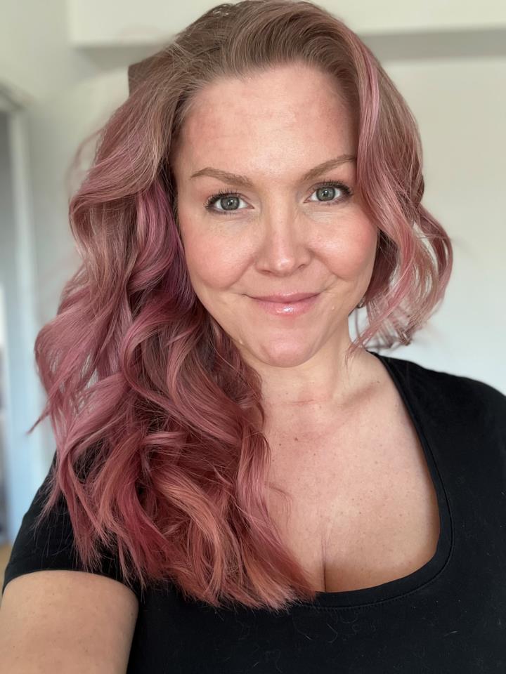 Jag har tidigare testat Dusty Rose och Cacao Intense (finns tidigare, längre recension på dem), Sand, Vivid violet (min mobil ville skriva Covid Violet 😅 Det hade varit ett namn det…) och deras ”silverinpackning” Pearl silver. Pigmenteringen varierar oerhört mycket. Från Pearl, som inte ger ett dugg på mig, till Pink Pop som jag har nu. Jag hade bara en liten burk av denna men jag spädde ut den med lika delar balsam som inpackning och då räckte den till mitt hår, trots att jag applicerade det torrt. Balsamet innehåller mer vatten vilket gör att det dessutom är lättare att fördela och lättare att undvika slingor som är färgade på utsidan och ofärgade på insidan (testar du applicera på torrt hår så förstår du vad jag menar). Blandar man ut inpackningen ytterligare kan du få en mer pastellfärgad rosa, beroende på ditt utgångsläge. Pigmenteringen är en anledning att jag tycker denna är betydligt mer prisvärd än Pearl Silver och Dusty rose t.ex där utblandning inte direkt ger något resultat. I de fallen tycker jag att nästan en hel flaska, för 300:- för EN färgning på torrt hår, som håller några tvättar är alldeles för mycket. Denna kan du, som sagt, blanda ut och ändå få en rejält rosa färg (eller mer pastell) till ett betydligt bättre pris. Fotot med mössan togs två dagar innan jag färgade (ja jag gillar rosa ;) men har också mörkare blonda slingor i sig som inte riktigt syns på fotot. Jag hr sedan försökt fota i lite olika ljus. I ”luggen” har jag blandat ut färgen lite mer för färgen brukar sätta sig hårdare där. Det var längesedan jag testade den här så det blir intressant att se hur länge den sitter, eller ja hur många tvättar det tar tills håret är blont igen (färgen bleks lite efter varje hårtvätt) Produkten doftar gott men jag tycker inte mitt hår känns mer välmående av det direkt… Som en medioker inpackning. Förpackningen med pumpen får du vara redo att klippa upp för att få ut allt (inte min favorit) och jag rekommenderar verkligen att ha en plastskål som du pumpar ut färg i, innan applicering, annars är risken att du får ett sammanbrott under tiden ;) Betyget 4 är pga nyansens starka pigment (Cacao intense är också bra pigmenterad men bara Vivid Violet har legat på samma nivå) #lykoreview