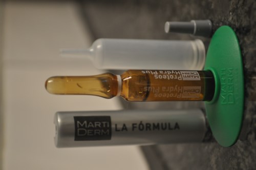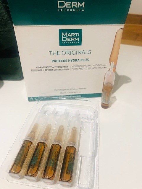 Proteos Hydra Plus ampuller är ett anti age serum som ska ge fukt och ge huden ett Glow och lämnar den smidigare. Daglig användning ska förhindrar och korrigerar rynkor och stärka huden. De fuktar på djupet och verkar uppstramande och med hjälp av en intensiv antioxidant / vitamin C. Hur använder man dem? Ja, förpackningen var aningen förvirrande först men det gav sig ganska snart vad allt var till, det följer med beskrivning som kunde varit enklare! Men så här ska man göra: *Skaka glasampullen försiktigt. *Använd den gråa hylsan som förs över glasampullen ända ner, då bryts spetsen enkelt av automatiskt. Smart grej! *Man får över pipetten och häller ca. 1/3 del eller hälften av innehållet i handflatan och applicera på rengjort ansikte. *Massera in tills det är absorberas! Spara ampullen med resterna i kylskåp till nästa dag. Låt den stå med hjälp av bottenverktyget och använd de små grå delarna till att försluta toppen! Vilken effektiv har jag fått? Jag har passerat 40 års ålder och fått endel tecken på åldrandet vilket jag dessa dagar tycker har blivit mindre. Serumet börjar arbeta från första appliceringen, men den är lite oljigare än nattserumet jag testat och kräver därför mer massage för att absorberas. Tycker det tar en stund också för den att sjunka in. Men jag älskar hur uppstramad och fräsch huden ser ut efteråt. Däremot tilltalade doften mig inte, svårt att beskriva och lite för stark, därav får produkten bara 4 stjärnor! #Lykoinflutester #martiderm
