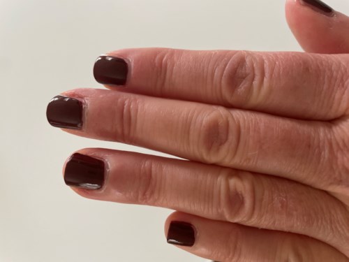 Fantastisk brunröd nyans. Perfekt för årets första höstdag. Något segtorkat och lite smalare borste. Behöver flera lackningar för att täcka men slutresultatet är kanon! Obs! Har färgen Edinburgh på tumnageln och Warm Cognac på de övriga fyra. #tävling1 produkt i inlägget Supersnygg! - Inlägget skapades 4 årBetyg: 5 av 5Verifierad köpare