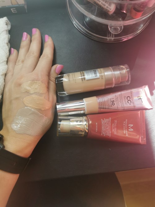 Min nya favorit "foundation", för anser att denna ger en högre täckning än en BB kröm så skulle klassa den som en Foundation med hudvård i👌☺️ Kan börja med att skriva att jag älskar denna när jag vill ha ngt lätt på huden som ger fukt, spf och täckning men som inte ser Matt eller kakig ut! Den smälter in i huden och ger fukt/glow utan att göra att min hud blir mer oljig❤️ Men bli inte rädda för att färgen är typ grå först, det är solskyddet som gör detta(zink och titanium) och det försvinner när du blandar ut det på huden. Så lämnar ingen vit hinna utan son sagt smälter ihop med din hud😍👌den är dryg också, och har en lite tjockare mouse konsistens, lite lite IT cosmetics CC cream. På bilderna har jag jämfört med, IT cosmetics i färgen Light Medium och loreals dream radiant i färgen 30 sand. Som ni ser är denna väldigt grå jämfört med dessa men passar mig kanon. Har färgen 23 nu när jag är lite brun annars färgen 21. Skulle tro att det inte är så himla viktigt att du hittar exakt rätt färg då den verkar anpassa sig lite efter din hudton då den smälter in i huden👌ger medium täckning som går att bygga upp eller ha som lätt täckning. Älskar allt med den speciellt att den har SPF 42. Luktar heller inget speciellt vilket är så bra, dock har den parfym i sig FYI men långt ner i INCI👌 Kan tänkta mig att torr hy älskar denna då den har glycerin och mycket oljor I sig👌men som sagt även en kombo/akne/oljig hy som jag älskar denna😍 Kan använda den bara som den är, då är den dock liiiiite för kladdig fortfarande för mig så jag sätter sen oftast med lite puder som jag gjort på bilderna👌 #tävling