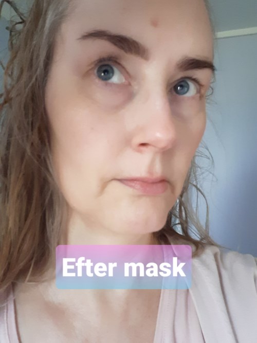 Masken var svalkande och skön att ha på sig. Jag satte på mig den, blundade och lyssnade på en podcast och det var riktigt avslappnande. Jag upplevde också att min hudton blev jämnare dagen efter jag använt den och de stora, onda finnarna som nyligen börjat blossa upp i mitt ansikte tycker jag lugnade ner sig. Masken i sig tycker jag var lite stor eftersom att jag har ett något litet ansikte men det var inga som helst problem då det gick att justera masken utefter ansiktet och vika vecken för att den skulle passa. Det enda som var lite störande var att hålet för munnen satt något långt ner och den delen tenderade att glida. Men till slut lyckades jag få den att stanna ganska bra när jag lutade bak huvudet. Att masken var så pass blöt av produkt hjälpte masken att sitta kvar där jag villa ha den. Det fanns mycket produkt i masken och jag använde resterna på min hals efteråt. Kommer definitivt använda denna igen! Obs! På bilden har masken torkat. #tävling778 visningar - Inlägget skapades 4 årBetyg: 3 av 5Verifierad köpare