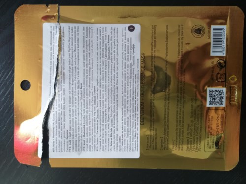 Denna lyxiga sheet mask innehåller guld och bigift som båda bidrar till kollagen- och elastinproduktion, ger huden lyster. Bigift hjälper huden att bekämpa ålderstecken, minskar redan befinliga linjer och rynkor, har positiv effekt på pigmentfläckar och solskador.