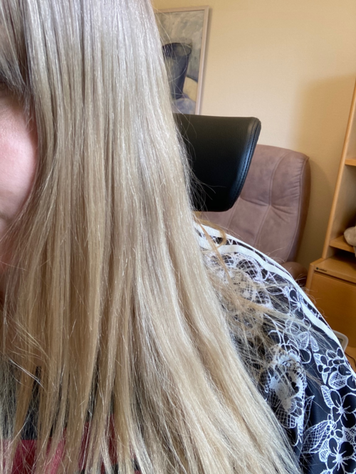 Jag har ett väldigt ljust hår i grunden och brukar lägga på denna toning när jag vill ha en kallare nyans. Viktigt att alltid lägga från hårbotten och 1 decimeter ut största delen av verkningstiden och sista 5-10 min resten av håret. Annars kan längderna skifta i lila. På bilden ser ni hur toningen ser ut efter 1-2 tvättar.3741 visningar - Inlägget skapades 5 årBetyg: 3 av 5