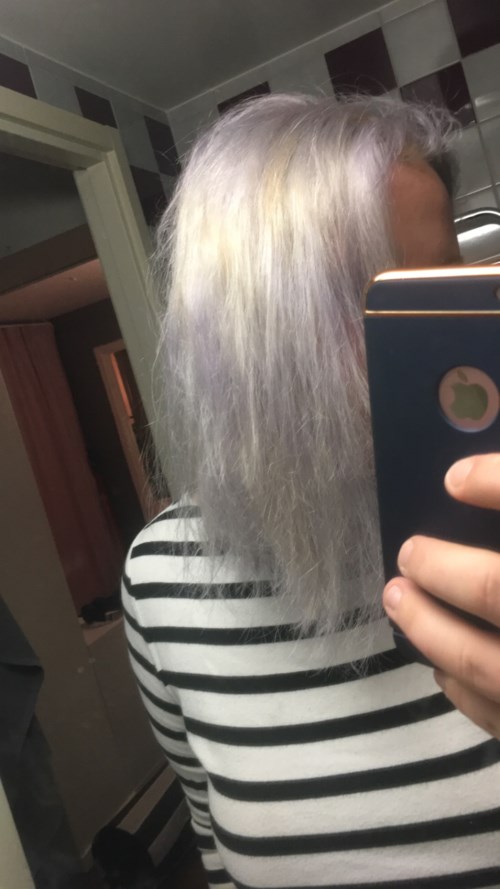 Följde instruktionerna och la färgen först i botten och en liten bit ut i 15 minuter och sedan längderna i ytterligare 10 minuter. Botten blev lite åt det blåa hållet men som helhet blev det ett väldigt grått intryck. Efter en tvätt släppte ganska mycket av färgen ändå, mindre blått/mer grått i botten och nästan lite vete i längderna. Men en otroligt fin glans trots nyblekt hår så kommer att testa en vända till!975 visningar - Inlägget skapades 5 år