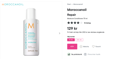 Denna funkar inte alls på mitt torra hår. Upplever inte att det tillför någon fukt, känns som ett väldigt lätt balsam som skulle passa någon med normalt till fett hår.1888 visningar- Användarens roll: Kundtjänst på Lyko.Kommentaren lades 3 årHejsan Karin! 🥰 Nämen du så typiskt att detta balsam inte fungerade som handen i handsken för just din hårtyp.🙈🧤 Då denna serie är både reparerande samt fuktgivande kanske det är så att du endas behöver fukt till dem torra längderna.🌟 Moroccanoil har en fuktgivande serie, du finner den nedan. lyko.com/sv/sok?q=Moroccanoil+Hydration Skickar även med några tips på mina favoriter som tillför fukt.😍 lyko.com/sv/olaplex/olaplex---bond-maintenance-conditioner lyko.com/sv/kevin-murphy/kevin-murphy-hydrate-me-rinse lyko.com/sv/davroe/davroe-moisture-hydrating-conditioner--325ml Önskar dig allt gott. 🌷