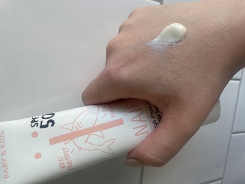 Naïf solskydd är också säkert att använda på nyfödda bebisars känsliga hud. Vi rekommenderar att hålla bebisar borta från solen så mycket som möjligt, särskilt under det första året.