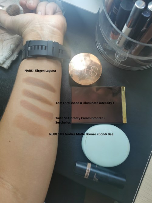 Denna smälter in i huden, ger en så fin färg på min hud som har kall/neutral underton och är SÅ lätt att använda! Sen att den doftar sommar/sol, typ solkräm från Hawain Tropics gör ju inget :P Denna innehåller ju COCOS NUCIFERA (COCONUT) OIL så kankse är den jag känner <3 Irriterrar inte min akne/känsliga hy trots denna ingrediens o sitter bra även utan puder över. Jag har swatachade denna bredvid några andra favoriter jag har; Tom Ford shade & illuminate intensity 1(glowig,inte matt & rätt kall i undertonen), Tarte SEA Breezy Cream Bronzer i Seychelles(Varm matt med en något varm/bronze undertone) & NUDESTIX Nudies Matte Bronze i Bondi Bae(varm teracotta matt färg). Denna har mycket pigment, man behöver bara lite men blandar ut super lätt! Går att ha på bar hud, över puder eller under och för mig funkar denna som tantour <3 ÄLSKAR DENNA! önskar denna var permanent(infon är att denna bara är tillfällig i sortimentet) & kommer absolut köpa färgen casino också #tävling