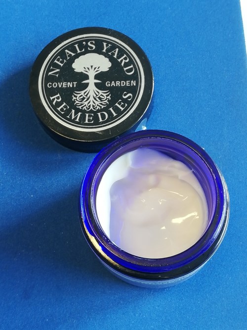 Hade stora förväntningar på den här ekologiska mandelkrämen som ska passa både känslig och torr ansiktshy som jag har. Tyvärr levde den inte alls upp till förväntningarna för mig. Positivt är den behagliga, lena konsistensen som gör att man blir frestad att gräva lite extra i den vackra blå glasburken! Burkens färg skyddar mot ljus enligt Neal's Yard så att krämen inte ska bli dålig. Doften är litet åt det maskulina hållet, tycker jag. Varken favorit eller katastrof. Den försvinner rätt snabbt efter applicering. Efter 3 veckors användning ropar min hy fortfarande efter mer näring och fukt för den stramar än och är lika röd som när jag började. Testar med en av Neal's Yards oljor under men det blir ingen större skillnad. Däremot börjar jag få små pluppar här och var; inkapslade pormaskar som jag inte har annars. Kommer på att jag inte kollat innehållet... när jag hittar kokosolja väldigt långt upp blir jag SÅ besviken! - Den är känd för att lätt täppa igen porer och brukar inte ingå i produkter för känslig hy som kan reagera just på för tunga, mäktiga ingredienser. Jättetråkigt och jag fattar inte hur jag kunde missa det. Använde resten av krämen till hals och dekolletage och det gick bra. Här kommer innehållsförteckningen om någon mer saknar den: Aqua (Water), Prunus amygdalus dulcis oil*, Cocos nucifera oil*, Glycerin, Cetyl alcohol, Cetearyl glucoside, Cetearyl olivate, Cera alba*, Helianthus annuus seed oil*, Calendula officinalis flower extract*, Sorbitan olivate, Lecithin, Simmondsia chinensis seed oil*, Oenothera biennis oil*, Chamomilla recutita flower extract*, Lavandula officinalis extract*, Pelargonium graveolens flower oil*, Citrus limon peel oil*, Xanthan gum, Tocopherol, Levulinic acid, Sodium levulinate, Potassium sorbate, Sodium dehydroacetate, Alcohol denat.*, Citral, Citronellol, Geraniol, Limonene, Linalool. * = Organic ingredient. Natural constituent of essential oils listed. Made with 71% organic ingredients.