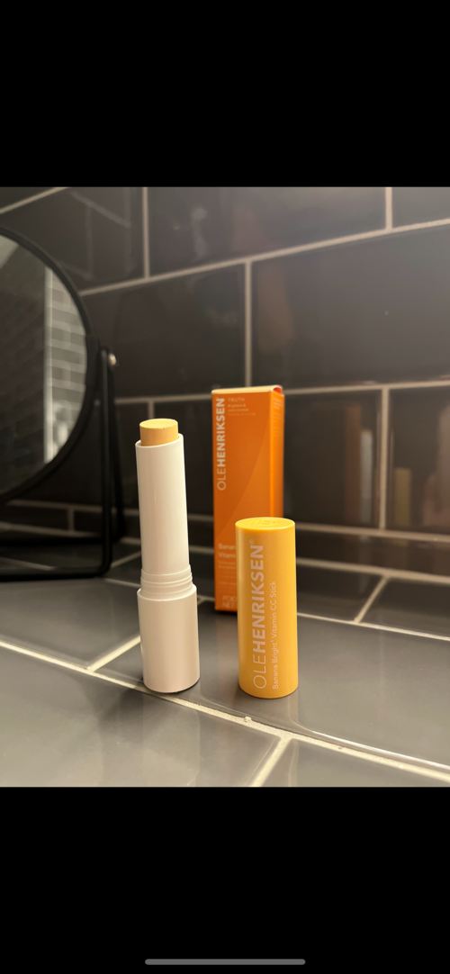 Jag är absolut positivt överraskad av Ole Henriksen Banana Bright+ Vitamin CC Stick - Banana! Jag testade en snabbis på jobbet innan jag fick möjlighet att testa produkten för Lykos vägnar och till en början var jag skeptisk, men har absolut ändrat åsikt. Och det är skönt när det går åt det hållet 😍 Formulan är ganska kladdig, så lite produkt goes a long way! Måste sätta den med någon typ av puder, annars lägger den sig i mina fina linjer, men när jag gjort det tycker jag att den sitter fint hela dagen utan att kladda eller separera. Och den känns ingenting! Men det jag vill säga med nackdelen med att den är så kladdig är att produkten är väldigt mjuk och skör. Jag tappade den i golvet från typ 1/2 meter (när den var stängd) och då gick stiftet sönder. Användningen är enkel och snabb. Jag sveper bara lätt under ögonen och klappar försiktigt in produkten med fingrarna, det tycker jag fungerar bäst för att värma upp produkten. Jag använder den både ensam och under min concealer som neutraliserar det gula - men jag ser otroligt stor skillnad när jag använt den och inte. Älskar också produkter som är en fushion mellan smink och hudvård, så att den har hudvårande egenskaper är ju bara stora stora plus. Riktigt fin produkt! #testbylyko #olehenriksen1 produkt i inlägget Imponerad!2750 visningar- Användarens roll: Lyko Creator.Kommentaren lades 2 årVilken intressant produkt! 😍👏 Synd att den gick sönder & blir kladdig annars låter den ju toppen! 💛🫶1 gillar
