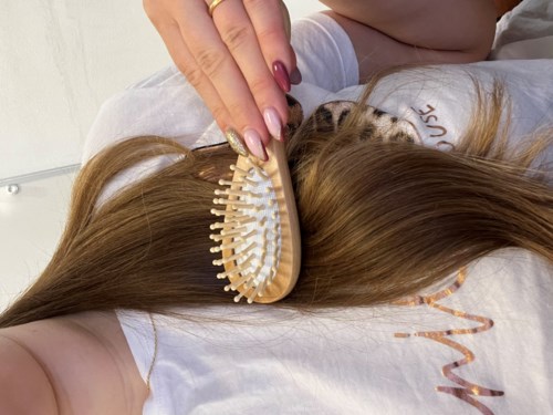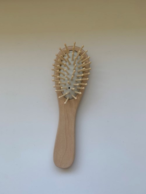 Hårborste av trä med oval form tillverkad av förnybart bambu.