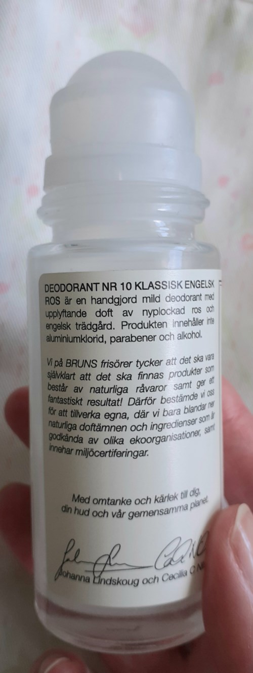 Har nu lyckats använda upp den här deon från svenska Bruns som jag haft i ett halvår i det ena av mina två hem😁 Säger "lyckas" för den var ingen hit för mig som är storsvettare men jag vill av plånboksskäl och miljöskäl alltid använda upp allt jag köper vilket är litet svårt när grejorna inte passar ens behov😀 Tänker också att det ska bota mig från impulsköp💸💸💸 Det har det hittills inte gjort🤥😅 Jag gillar Bruns hårprodukter sedan flera år, speciellt hårinpackningen som är fenomenal lyko.com/sv/bruns-products/bruns-products-oparfymerad-harmask-nr-23-350ml 👏 Deon är den första icke-hårvårdsprodukten jag provar. Bra innehåll i klassisk glasflaska med medelstor rollkula. Mild formula som är snäll mot torr och känslig hy, rätt diskret rosendoft🌹👍 Tar några minuter att torka. Tyvärr förvandlas rosendoften på mig till en mindre behaglig - läs: unken - lukt så fort den aktiveras👎 men det kan vara ngt som enbart gäller mig, vad vet jag🤷♀️ (Fast det var tredje gången det hände med just rosdeo så nu blir det inga fler för annars börjar jag förknippa rosendoft med svettlukt😁). Summa summarum är den här deon antagligen jättebra för dig som svettas normalt och vill ha ngt som är snällt för hälsa, miljö och djur. - Till er andra storsvettare rekommenderar jag varmt min ekofavorit Schmidt's deo med kol och magnesium som är toppen lyko.com/sv/schmidts/schmidts-charcoal---magnesium-deo-stick-75g Den här får 3 stjärnor ⭐⭐⭐
