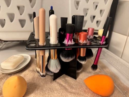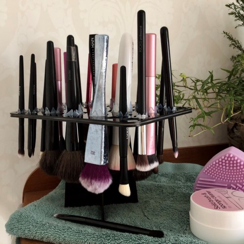 Kanonbra produkt för att hänga sminkborstar på tork. Torkar snabbare än att lägga borstarna platt på en handduk vilket jag gjorde innan och det känns bra att vattnet rinner neråt och inte in i borsthandtagen. Minus för att jag tyckte det var lite svårt att få i vissa borstar i hålen och hade föredragit fler hål för borstar med tjocka handtag, men jag är nöjd!917 visningar - Inlägget skapades 1 år
