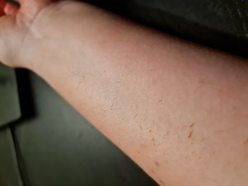 Färgen är okej, doftar sött kaffe (upp till var och en att gilla eller avsky). Men det största problemet tycker jag är att krämen lägger sig som en film över kroppen, ungefär som när man råkat få trälim på huden, den torkar in och bildar en tunn hinna. Den här hinnan korvas ihop och rullas av om man rör vid huden. Det är ju inte kladdigt, men känns ändå som att jag måste stå som da Vincis "den Vitruvianske mannen" tills allt torkat ordentligt för att inte råka gnugga bort hinnan. "Nja" är det samlade intrycket. Bild: hinnan som knorvat ihop sig när man rör vid huden.906 visningar- Användarens roll: Kundtjänst på Lyko.Kommentaren lades 3 årHejsan Agens!😀👋 Tack för att du recenserar och delar med dig av dina upplevelser av produkten.🙌 Så tokigt att denna upplevs som en hinna som korvar ihop sig på huden efter applicering. Ett tips är att använda en lite mindre mängd produkt och låta den torka in ordentligt innan man vidrör huden och sätter på sig tighta kläder. Önskar man mer nyans så är den perfekt att bygga upp och applicera den i flera omgångar. Ett till tips är också att använda en bodyscrub innan för att avlägsna orenheter och död hud. Pasión har också en bodyscrub om du önskar en produkt från samma varumärke.🤗➡ lyko.com/sv/pasion/pasion-fabulous-bodyscrub Hoppas att du kan få lite hjälp av tipsen här ovan.🙏 Önskar dig en toppenbra dag!🌞🌸