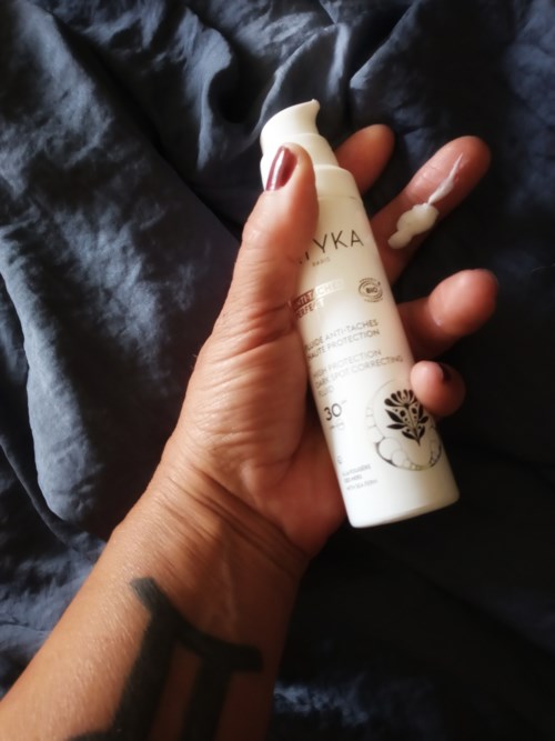 Som #lykoinflutester har jag under några veckor testat flera produkter från #patyka Det här är min upplevelse av High Protection Dark Spot Correcting Fluide Spf30. ¤ 51 år, tidigare rökare och solariesolande på 90-talet. Först nu börjat använda solskydd, arbetar natt i vården. Lätt för att bli brun. ¤ Hyfsat normal hy men lätt att fläckvis bli torr, flera pigmentfläckar finns och förstås vanliga ålderstecken. Använder ofta keps eller hatt när solen är stark. Produkten är från: ¤ Patyka, High Protection Dark Spot Correcting Fluide Spf30 ¤ Doften är svår att beskriva på den här, lite rökelse och örter men ändå lite livlig, kanske är det citrus eller mandarin som lyfter den. Känns naturlig. Doften lägger sig snabbt och det som stannar är mera en förnimmelse av mandarin. ¤ Konsistensen går in i huden efter lite arbete. Första gångerna så blev jag vit när jag använde den. Förpackningen är snygg, smart med tips på hur du använder produkten inuti förpackningen. När jag trycker på pumpen upplever jag mängden lagom med endast ett lätt tryck. Den här produkten ska: ¤ Korrigera mörka fläckar, typ pigmentfläckar. Om man tittar på före- bilden på mig så ser man en ganska stor pigmentfläck. Den har funnits i flera år. Jag har testat olika produkter även syra, men ledsnar efter ett tag. Det tar för lång tid och jag bryr mig inte så mycket. Fläcken och andra mindre fläckar kommer bland annat från solarium, solen och varit den som alltid vägrat solskydd. Jag är ute mycket och blir brun när första vårsolen kommer, och pigmentfläckarna blir mörkare. Även om jag nu för tiden använder solskydd. Det här är alltså en produkt jag gärna skulle vilja att den fungerade så bra som den låter. Egentligen är den testad för kort tid (knappt en månad) för att verkligen kunna se resultat. Det jag kan se är att i vanliga fall blir den stora fläcken mörkare i takt med att huden blir brun. Där tycker jag mig se en liten skillnad, upplever alltså fläcken ljusare. Jag tycker om den när jag använder den, men jag tror också att man för rättvisans skull ska vara medveten om att det tar tid. Det som drar ner betyget är helt enkelt att jag inte känner mig helt övertygad.158 visningar - Inlägget skapades 3 årBetyg: 4 av 5Verifierad testare