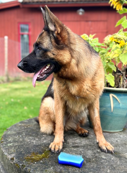 Hade turen att vinna två borstar från Pet Teezler i våras, varav denna är den ena. Den andra borsten var inte alls bra på min hund, men denna funkar mycket bättre. Min hund har ganska grova strån överst med en ullig mjuk underull. Just nu fäller hon underullen rejält och jag har testat många borstar som inte alls klarar att komma åt just den pälsen. Men den här borsten överraskar med att vara riktigt bra på underullen, det fastnar stora tussar i borsten. Borsten har en liten smidig storlek vilket gör att det är enkelt att komma åt runt bakbenen och på andra ställen där det är trångt. Fia är inte särskilt förtjust i vissa borstar men den här borsten ser hon till och med ut att tycka det är skönt att bli borstad av. Ett plus med den är att den också är enkel att göra rent. - Inlägget skapades 1 år