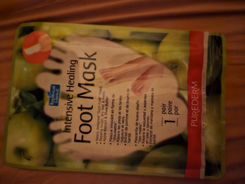Med mycket mjukgörande sheasmör, äpple, pepparmint och andra naturliga helande ingredienser, mjukar Purederm Intensive Healing Foot Mask upp förhårdnader på huden på ett märkbart sätt och reparerar torra, spruckna fötter och hälar, samt förbättrar avsevärt utseendet på även de torraste fötter. Denna nyutvecklade fotmask i "sockform" tillför effektivt fukt och läkemedel till din skadade hud för ett jämnare, friskare och mer strålande utseende.