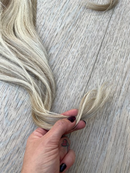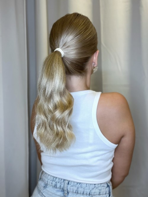 - Använd alltid värmeskydd vid styling med värmeverktyg och styla på max 180°C. Temporära extensions kan med fördel stylas innan isättning