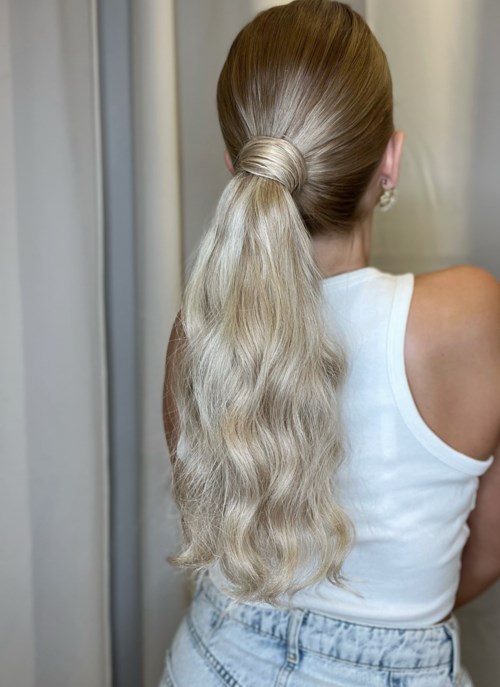 Med en Clip-in Ponytail skapar du snabbt och enkelt en tidlös klassiker - hästsvansen. Den mångsidiga hårdelen i äkta hår ger dig den ikoniska looken med ett naturligt, fylligt resultat. Sätt enkelt fast ponytailen i din egen hästsvans med den insydda kammen och fäst med kardborreslingan. Bär din Clip-in Ponytail som den är, fläta den eller styla efter dina önskemål - endast fantasin sätter gränser!