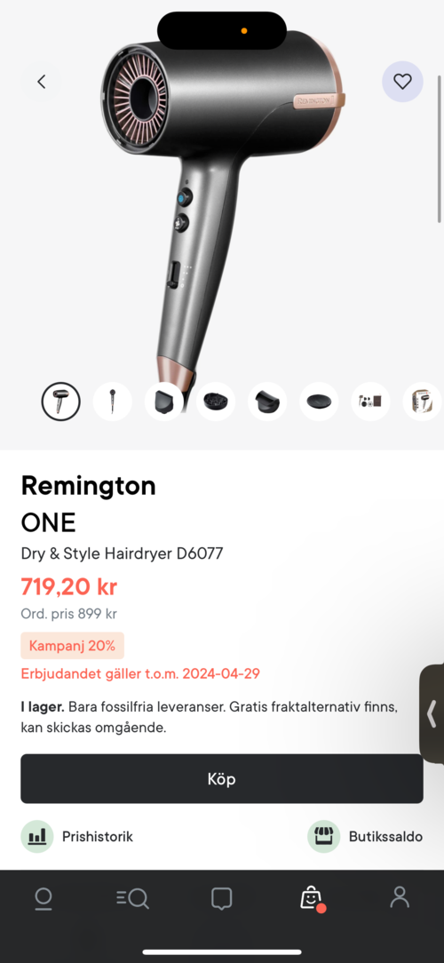 Jag har en Ghd Air som jag tycker mycket om, men den är lite tung när man som jag har problem med armar och axlar. Så jag blev rekommenderad den här av Lyko. Det är smidig storlek på den här, den är varken för lång eller för tung. Mitt hår går nästan till midjan och trots att det inte är tjockt så tar det en stund att föna torrt. Den här väger ungefär hälften av Ghd Air, vilket underlättar. Praktiskt med olika munstycken beroende på vad man har för hårtyp och hur man vill föna/styla håret. Den här blir inte heller lika varm som Ghd, vilket är både bra och dåligt, det är ju skonsammare för håret och hårbotten. Den är bekväm att hålla i och jag kommer inte åt knapparna lika lätt som på andra hårfönar. Den enda nackdelen jag har upptäckt är att sladden inte är så lång. Bra köp om man är ute efter en bra vardagsfön. #lykoreview885 visningar - Inlägget skapades 7 månaderBetyg: 4 av 5Verifierad köpare