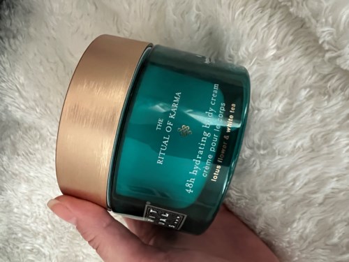 The Ritual of Karma 48h Hydrating Body Cream" från Rituals är en underbar body lotion med en härlig och lite söt doft som lämnar en diskret doft på huden. Krämen har en lätt och skön konsistens som är lätt att arbeta in i huden. Den återfuktar på ett effektivt sätt och är mycket dryg, vilket gör att den räcker länge. Jag har en rätt så torr hy så för min del passar denna body lotion väldigt bra. Personligen så tycker jag att den är som bäst att smörja in sig med efter kvällsduschen så att den verkligen får sjunka in och verka på djupet. Jag upplever att den håller huden återfuktad under hela dagen och ger en mjuk och len känsla. Sammantaget erbjuder denna body lotion en lyxig upplevelse med sin doft, effektiva återfuktning och bra valuta för pengarna. Jag rekommenderar denna produkt till alla som vill ha en prisvärd lotion med en härlig doft och effektiv återfuktning #rituals #lykoinflutester #karma461 visningar