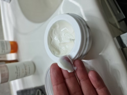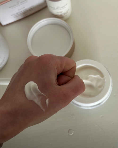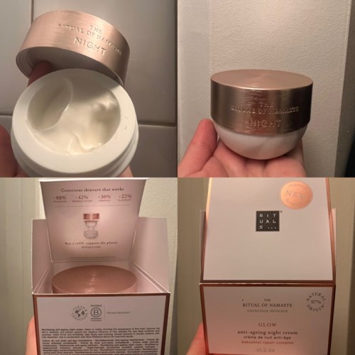 En jättebra nattkräm som snabbt går in i huden. Till en början känns konsistensen tjock, men lämnar ingen fet hinna alls på huden. Jag använder denna nattkräm tillsammans med serumet ur samma serie, och huden är len och återfuktad på morgonen ✨ Efter applicering ger den även ett jättefint lyster. Denna nattkräm har varit en räddare i nöden nu när mitt ansikte varit så torrt under vintern och våren. Jag har kombinerad hud och har inte fått några utslag eller finnar alls, vilket jag kan få ibland av ansiktskrämer. Tyvärr så doftar den rätt mycket, vilket jag inte tycker är så behagligt i just ansiktet och därför blir det ett minus i betyg. Ett plus däremot för den jättefina förpackningen! 🤩 Resultatet är jag dock jättenöjd med och kommer helt klart fortsätta att använda denna nattkräm! 🥰 #LYKOINFLUTESTER #RITUALS #NAMASTE - Användarens roll: Lyko Creator.Inlägget skapades 2 årBetyg: 3 av 5