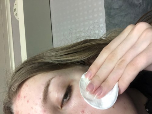 Applicera på en bomullsrondell och torka ansikte, ögon och läppar två gånger om dagen. Upprepa tills bomullen ser ren ut. Behöver inte sköljas bort.