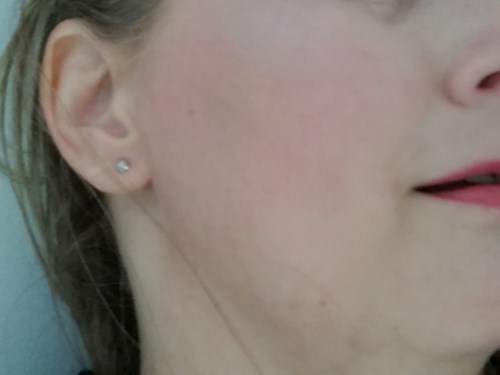 "Demure" ser inte så mycket ut för världen i den lilla glasburken: jag undrade hur den här tuggumifärgade/laxrosa saken skulle kunna passa mig som har väldigt kalla färger! Men på kinden blev den som förbytt och förvandlades till en klassisk blekt rosa, som ljus nyponros ungefär. Ser väldigt naturligt ut - som om man har fått rosor på kinderna av frisk luft. Tror att den även kan passa den med varm underton så länge huden är ljus. Superlätt att applicera med fingrarna och så skön för torr, mogen hy! Helt oparfymerad som alla Rms Beautys produkter och smakar eller luktar inget heller (vilket en del oparfymerat gör). Mkt pigmenrik, behövs bara lite. Trots det höga priset är den mkt prisvärd. Den är nämligen otroligt dryg, syns inte på min att jag använt den ett tag så burken kommer att räcka i flera år - om inte produkten blir dålig innan dess, förstås. På läpparna blir Demure inte snygg på mig - kanske för att jag har väldigt röda läppar av mig självt. Den ser då ut som i burken igen: laxrosa och varm ut, konstigt nog. Torkade ut mina läppar men som rouge är det snarare mjukgörande. (På bilden 1+2 ovan har jag RMS Beautys Uncoverup #00# som foundation och Lily Lolos läppstift Romantic Rose.) "Beloved" å andra sidan är klarröd, inte lika mörk på de bilder jag sett utan just en medelstark röd utan tydlig underton. Ser mkt varmare ut när jag testar den på insidan av handleden. På kinden ser den snarare kall ut på mig, ger ett litet friskt och sportigt intryck först men tycker att den bleknade efter ett par timmar. Väldigt pigmentrik först men är nog aningens glansigare än rosa Demure som är mattare och håller hela dagen. Tror Beloved passar alla med litet starkare färger än jag (dvs de flesta!) och antagligen både dem med kall som med varm underton. På bild 3+4 längst upp syns hudutsrykning av Beloved resp hur den ser ut som rouge på mig. Foundation: RMS Beautys Uncoverup #00# och läppstift Lily Lolos French Flirt. (Tyvärr hamnar bilderna ej som jag placerar dem!)1 produkt i inlägget Demure - snygg, blek rosa perfekt för mkt ljus hy! Beloved - friskt röd!8535 visningar- Kommentaren lades 7 årBeloved - friskt röd! Sätter in separata bilder här på Beloved eftersom det tyvärr inte går att göra mer än ett inlägg per produkt, oavsett om man vill recensera flera nyanser eller ej. Bild 1: färgutstrykning på Beloved. Bild 2 visar hur den ser ut på ljus hy med kall underton. Dagsljuset gör mig mörkare än vad jag är. Foundation: RMS Beautys #00#, läppstift Lily Lolos French Flirt.