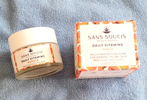 Tyska Sans Soucis är ett märke jag har börjat tycka allt mer om👍 Trots sitt franska namn - "Sans Soucis" betyder "Inga problem" - är märket tyskt och allt tillverkas i Tyskland👏🏻 De testar ej på djur🐁🐒🐇👍och använder många naturliga ingredienser vilket jag gillar! Jag har väldigt torr, tunn, lite känslig hy som behöver mkt fukt💦 och fett. Den här veganska ansiktskrämen ih ingen mineralolja, parabener, mikroplaster, PEG, silikoner, dofter, gluten eller laktos👏🏻 Trots att krämen ska vara för normal till torr hy vilket ALDRIG brukar vara tillräckligt för min torra hy, blev jag så nöjd med ett prov jag fick i somras att jag vågade satsa på en hel burk☺ Jag behövde INTE ångra mig😊 Den har mjukgjort ansikte, hals och dekolletage okt-dec och det är säkert tack vara persikooljan🍑 makadamiaoljan och olivoljan som den räckt till - feta, mysiga oljor😁 Lägg till papayaextrakt🥭 (ja, det är en mango men vi får låtsats att det är en papaya) som mjukgör mkt bra pga att det med sitt höga enzyminnehåll ger en lätt peelande effekt och för all näring det ih i form av vitaminer och antioxidanter, glycerin och hyaluronsyra💦 så har vi en mkt fin kräm till ett helt ok pris (speciellt om man köper på kampanj🤑 som jag gjorde - dock ej på Lyko😉)! Gick bra ihop med alla mina olika serum, sf och arganoljan som alla är mina ständiga följeslagare! Kommer definitivt att köpa den igen👍 - Kommer i lätthanterlig frostad glasburk med skruvlock👍 och ytterkartong. Jag förvarar ofta krämerna i sina kartonger i badrumsskåpet för att skydda produkten från ljus. - Den får lysande stjärnor/saftiga papaya (mangos😄) 🌟🥭🌟🥭🌟🥭🌟🥭🌟🥭 #lykoreview - Inlägget skapades 5 år