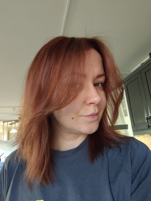 Blandade 5-4 och 6-78 för att få en fin lite mörkare rödbrun-ish färg, men av någon anledning tog mitt hår upp alldeles för mycket pigment. Resultatet blev mörkbrunt med vissa svarta partier. Inte ens den lilla utväxt jag hade fick rätt färg. 🫣 Fick hem ett djuprengörande schampo som jag använt i tre veckor för att försöka få ur så mycket färg som möjligt, men färgen har verkligen satt sig så det har inte blivit någon skillnad alls förutom att håret är riktigt, riktigt torrt nu. 😳 Det enda positiva jag kan säga om toningen är att håret blev glansigt efter användning. #lykoreview4521 visningar- Kommentaren lades 1 årLa upp denna bild och frågade vilken färg jag kunde använda för att få till något liknande, och fick då 5-4 + 6-78 rekommenderat. ♥ Nu är håret äntligen tillbaka till den röda färgen jag hade innan och får nog nöja mig med den. Vågar inte riskera fel färg igen eftersom mitt hår tog så mycket stryk av att få bort toningen som satt stenhårt.