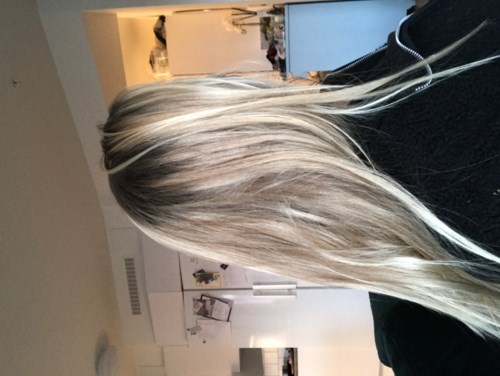 Pastelltoner och glans på blonderat och slingat hår. Glansbehandling för ofärgat eller färgat hår med 0-00 Clear.