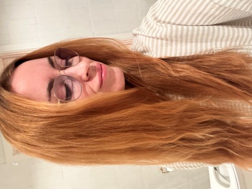 Var egentligen ute efter någon form av strawberry-nyans men sen vet jag inte riktigt vad som hände. Trött på att tänka så blandade den här med 9-7, extra ljusblond koppar. Och visst blev jag rödblond men en hyfsat stark gyllene ton. Lite pastelligt sken. Bild kommer. Utgångsläget var ljusblont med naturliga kopparinslag i främst underhåret. Produkten är lätt att applicera, till och med under processen när jag får ångest över "varför sektionerar jag aldrig ordentligt!" Blev jämnt och fint. Ingen störande doft. Hade velat ha någon form av efterbehandling då mitt hår blev väldigt torrt när produkten sköljdes ur. Löste det med balsam dock. Nöjd!
