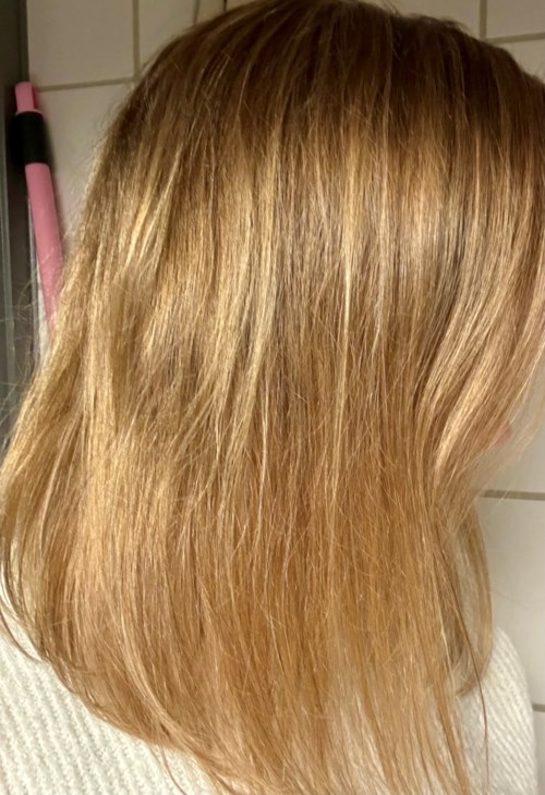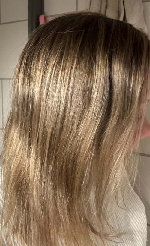 Har varit plattina blond tidigare och gjort två besök hos en frisör för att gå mer mot min naturliga hårfärg, lite mörkare men ändå varm. Bad om honeyblond, visade bilder men efter två besök upplevde jag mig fortfarande som grå-dassig i håret. Skickade samma inspo-bilder till Lykke Beuatyscan (hårfärgstest) och blev rekommenderad denna. En kartong räckte till mitt tjocka hår, och resultatet blev precis vad jag önskat, ljus, varm och mer naturlig! Så tacksam för en klockren rekommendation 💛