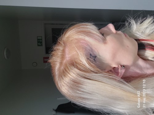 Hade den ljusare askblonda i längderna och den mörkare i botten. Nöjd, behöver bara en mörkare nyans nästa gång till rötterna och utväxten men det ljusa i längderna är riktigt ljust och fint. - Inlägget skapades 1 månad