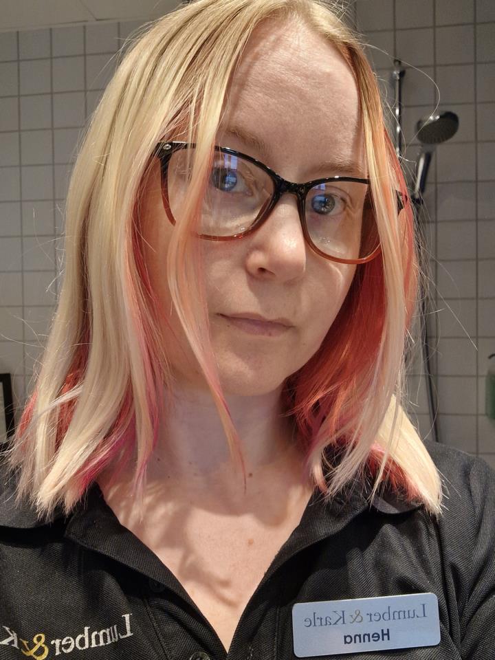 Blev utvald att prova hair gloss intense Red 😊 Bild på mitt hår innan, blond med ganska mycket utväxt 🫣 Tycker att det är perfekt att ha en sån här produkt i tub, blir lätt att få ut produkt och att förvara det som blir över. Gillar att konsistensen är så pass tjock, gör att den inte ramlar av handskarna lika lätt som vissa andra produkter. Behaglig doft som jag känner mig ganska van vid. Lätt att applicera, jag spraya bara håret så det var lite fuktigt innan. Positivt överraskad av den fina nyansen, ca 10 minuter innan jag sköljde ur. Enda negativa egentligen är att den tvättas ur väldigt ojämt, iaf för mig, som kan ses på bilden där jag håller upp "överhåret". Är lite rödlila slingor blandat med urtvättat röd där även en del blont ser ut att titta fram (efter två tvättar). Tror att om man redan har rött hår och behöver en "boost" utan att riskera skador på håret så är nog denna produkt ett toppen alternativ 😊 #schwarzkopf #lykotestpilot