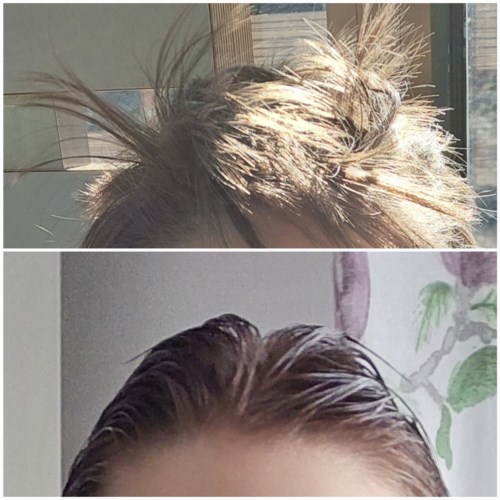 Inte nog med att sprayen mest låg som en kladdig hinna i håret - frisyren höll inte alls. Kladdigheten försvann visserligen snabbt men det gjorde frisyren med. Det är två timmar mellan bilderna... "72h - håller mot fukt och vind" stämmer alltså inte alls. Kan inte rekommendera denna spray. #tävling1 produkt i inlägget Inte något vidare