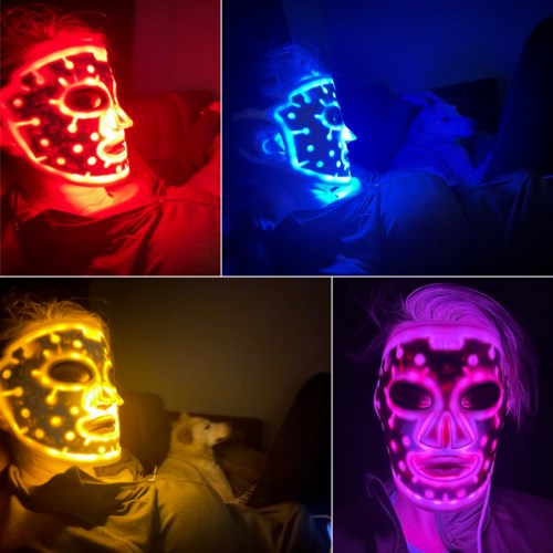 Silk’n LED Face Mask 100 har hela 4 färger på LED-ljus, var och en jobbar på olika våglängder och mot särskilda problem. Masken har 100 ljuskällor.