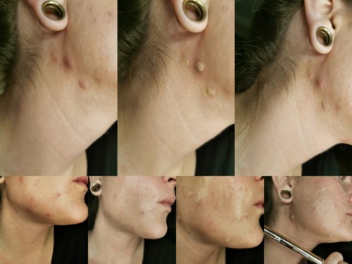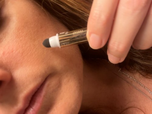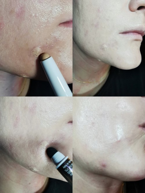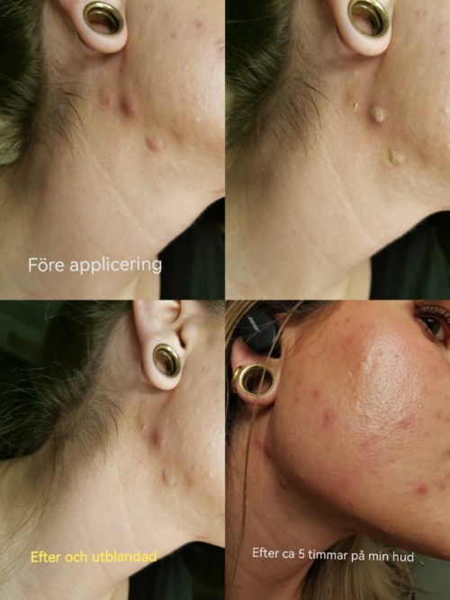 Applicera produkten på orenheter och använd sedan mixerspetsen för att jämna ut produkten på huden.