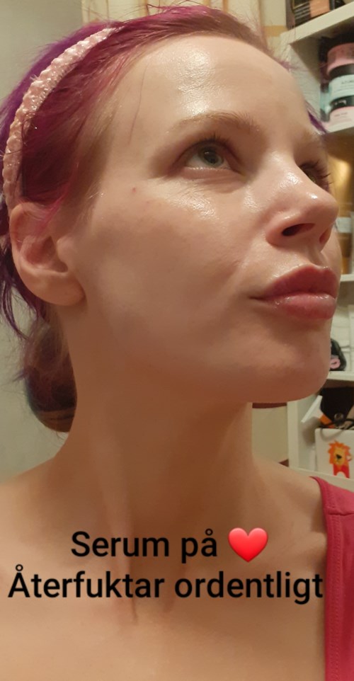 Har använt några dagar nu, jag brukar vänja in huden men har varit så taggad så har bara kört på, rekommenderar verkligen som med all hudvård att vänja in produkterna långsamt men just denna har jag bara kört på o använt när jag känt för det. Jag har den efter rengöring och innan dagcreme eller liknande. Använder några droppar och har både klappat in serumet men även masserat direkt på huden. Det lägger sig fint och torkar in fort men man känner att huden blir rejält återfuktad och ännu bättre fungerar den med en återfuktande dagcreme, jag använder lykos egna dagcreme utan parfym och det är verkligen en bra kombination, sminket vill gärna bli kakigt och torrt men med den här i min hudrutin så har min hy blivit mer samarbetsvillig och verkligen supernöjd över all fukt den tillför 😍😃använder den oxå på kvällen ibland efter rengöring men innan nattcreme❤️kommer köpa igen när den är slut och det verkar ta ett tag då den är väldigt dryg🙌🙌 #tävling788 visningar- Kommentaren lades 5 årNäe jag hade aldrig hört om märket så det är så kul o hitta nya saker man även gillar, det luktar ingenting tycker jag, men har lite dåligt luktsinne tyvär men jag tycker inte den luktar alls👍ha en fin dag Aka och Cecilia❤️4 gillar