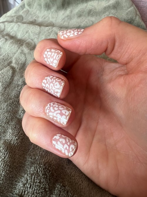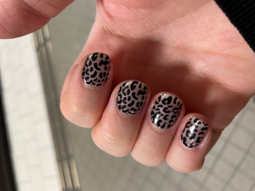 Jag tog paus från att göra gelack på salong och hade en fruktansvärd utväxt. Filade ner gelacken en del och lade sedan Love'n Layer leopard över för att dölja. Wow! Blev sååå nöjd! Det satt även bra på min naturliga nagel som är väldigt tunn. Den stärkte nageln så den kunde börja växa ut utan att skiva sig. ❤️ Toppen! Jag hade leopard i ca 10 dagar innan jag bytte till Fransk manikyr då jag kunde fila bort det mesta av gelacken. Sheetsen är lätta att ta bort med nagelolja! Tips! OM ditt schampo innehåller olja (ex. Sebastians Dark oil) använd handskar vid dusch då jag upplevde släpp vid nagel-kanterna. Mycket bra produkt! Gav dock en 4a då jag behöver fler mallar av mindre storlek för att kunna använda dem två omgångar.