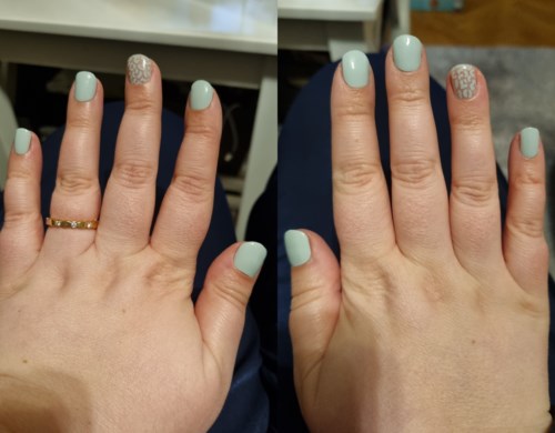 Lätt att använda och är kul att kunna få olika snygga looks utan större ansträngning. Hade priset varit lägre hade det varit 5/5. Hade gärna sett flera olika mönster. Bilden är efter en vecka.1 produkt i inlägget Snabb nail art1762 visningar - Inlägget skapades 3 årBetyg: 4 av 5