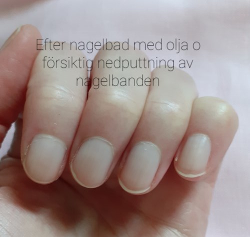 Manikyrdags😊 Med min nyinköpta peelingkräm för nagelband ville jag se om jag kunde få lite prydligare nagelband utan att skada dem för mina hade blivit svåra att peta ner. Nagelbanden är till för att skydda nageln från smuts och bakterier så de ska man vara rädda om annars kan man råka dra på sig paronyki = en mkt smärtsam nagelbandsinfektion - kan bli allvarligt! * Efter ett skönt fingerbad på några minuter med ljummet vatten med lite olja i, torkade jag dem och sköt försiktigt ner nagelbanden med en av Mavalas klassiska manikyrpinnar lyko.com/sv/mavala/mavala-manikyrpinnar?gcli Sen på med en liten dutt av den oljiga, lätt korniga nagelbandskrämen som fick verka 5 minuter. Sen masserade jag den runt den på naglarna innan jag sköljde bort den. Använde mjuk nagelborste för att få bort döda hudceller och den starka citrondoften! Sen lite lätt bearbetning igen med manikyrpinnen och då lossnade den del av nagelbandet som vuxit sig seg och långt ut😃 Avslutade med handkräm från Maria Åkerberg + den härliga hand- och nageloljan från Comfort Zone lyko.com/sv/comfortzone/comfortzone-hand-and-cuticle-oil-15g Nästa dag var skillnaden tydligare. Citrondoften var också helt försvunnen. Några dgr senare lade jag på ett av mina vanliga stärkande lack från Scratch Nails och manikyren var komplett💅👍😁 + Bra produkt som bl a innehåller både mild aha-syra i form av mjölksyra och bha-syra i form av salicylsyra för att underlätta, avocadoolja 🥑 och kakaosmör för näring och fett samt mkt annat. -Doften och priset drar ned betyget! Vet inte om den påträngande citronaktiga 🍋 lukten kommer enbart från ingredienserna linalool, limonene och citronellol (som i sin tur förekommer naturligt i olika citrusfrukter) eller om det är från den tillsatta doften men den är för stark! Jag är doftöverkänslig men ändå - citrus är en känd migräntrigger för många som fel dag utlöser även min migrän. Oparfymerat och en billigare kräm hade varit så mkt bättre 🙂 Får 4 citroner🍋🍋🍋🍋