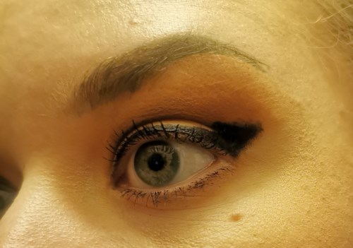 - För pennan längs ögat. För en mjukare look kan du använda en liten, tät borste eller fingret för att försiktigt sudda ut linjen.