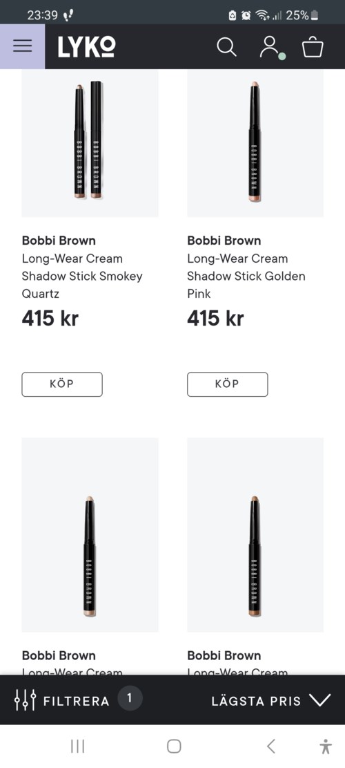 Jag älskar Bobby Browns produkter och i synnerhet deras eyeshadow stick. Lättjobbade, krämiga stift som glider på och sitter som berget (trots mina oljiga ögonlock) och aldrig irriterar känsliga ögon. Väldigt fint skimmer som ser helt magiskt ut på ögonlocket, aningen svårt dock att fånga skimmer och exakta färgnyanser på bild. Jag har dessa i många färger som alla är fina, men mina alltime favoriter måste ändå vara (bland de skimmriga); "MOONSTONE"💯, "SMOKEY TOPAZ"😍 och "MICA"👌. Av de matta sen är "TAUPE" den shade jag använder överlägset mest, det är en perfekt neutral ljusbrun nyans som jag ofta använder för sig själv för en enkel vardagssminkning.1 produkt i inlägget Favoritglitter i perfekt nyans1223 visningar - Inlägget skapades 1 årBetyg: 2 av 5
