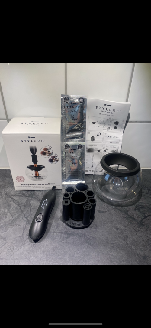 STYLPRO är en automatisk och omedelbar rengöringsenhet för alla dina borstar - oavsett storlek. STYLPRO levereras med två påsar vegancertifierad rengöringsvätska, åtta borstkragear, STYLPRO-enheten och en återvinningsbar plast, BPA-fri, rep- och fläckresistent skål - så all magi kan hända på en plats utan spill.