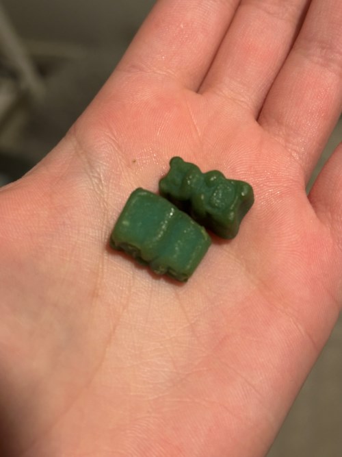 Gummibjörnarna är smaksatta med naturligt fruktaxtrakt, kokosolja och en nypa socker. Ät inte mer än 2 gummibjörnar per dag.
